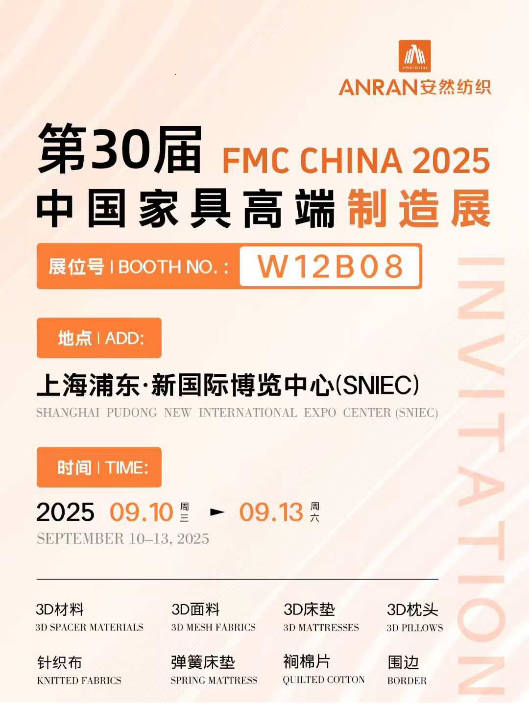 More >福建省安然紡織科技有限公司成立于2012年,注冊資金5888萬元,廠區占地200畝,建筑面積20萬平米,現有員工500多人,主要致力于3D材料、3D面料、針織提花面料、床墊、枕頭、軟床、沙發、餐桌椅等系列產品的研發、生產及銷售,是一家擁有自營進出口權的國家高新技術企業,產品遠銷國內外。